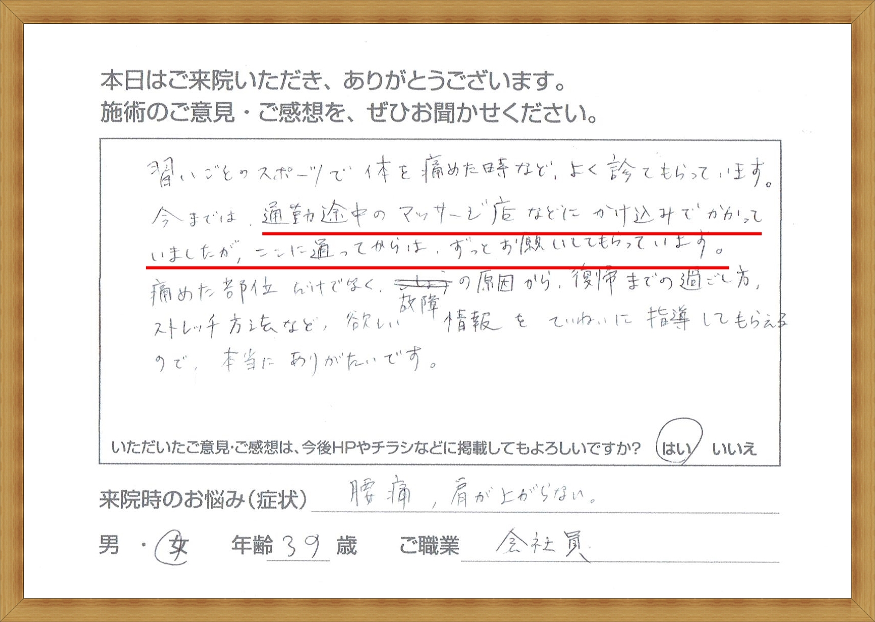痛みの出ない身体を取り戻すお手伝いをさせていただきます。
